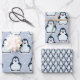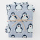 Kleine Pinguine Snowy Design Wrapping Paper Set auf einem schneeblauen Hintergrund.