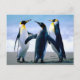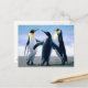 Postkarte mit einem Foto Pinguine, die am Strand spielen.