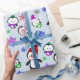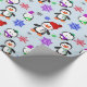 Adorable rote, grüne, lila, hellblaue Schneeflocken und Pinguine festliche Weihnachtsverpackung.