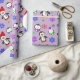Adorable rote, grüne, lila, hellblaue Schneeflocken und Pinguine festliche Weihnachtsverpackung.