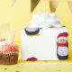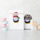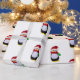 Penguin mit Weihnachtsmannmütze und Schal auf Weihnachtsverpackungspapier