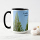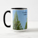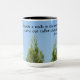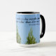 "Ich ging im Wald spazieren und kam größer als die Bäume heraus." Zitat von Henry David Thoreau gegen einen klaren, blauen Himmel und grüne Kiefernberge auf einer natürlichen fotografischen Tasse, ideal für jeden Nature Lover. Dieses Bild ist eine originelle Naturfotografie von JLW_FOTOGRAFIE.