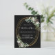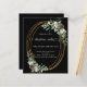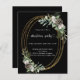 Schwarzer Hintergrund mit Kegeln, weißen Beeren und grüner Farbe. Ein ovales Imitat aus Gold. Personalisieren und fügen Sie die Details hinzu. 1 Blatt = 1 Einladung mit Druckkante bis Kante.