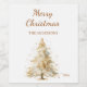 Ein weißer Hintergrund mit einem von Hand gezeichnet, wasserfarbenen Kiefernwald, der mit Schnee bedeckt ist. Text: Frohe Weihnachten. Personalisieren und fügen Sie Ihren Familiennamen und das Jahr hinzu.