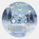 Kiefernwald und Saitenlichter, blaue Gnome auf blauem Hintergrund. Ein elegantes und raffiniertes Design. Passen Sie Ihre Namen und Adressdaten an.