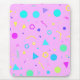 This mouse pad features a playful neon Memphis geometric pattern with colorful 80s-style shapes on a vivid pink background. Perfect for adding retro charm to your workspace while keeping your desk stylish and fun.