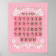 Pink Alef Beis Poster mit weißen Blume. Süß für alle Mädchen Zimmer. Klare Darstellung hebräischer Buchstaben.