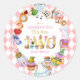 Pink Alice in Wonderland Tea for Two Birthday Runder Aufkleber