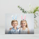 Celebrate Easter with this adorable personalizable photo card, perfect for siblings or little ones. The card features your custom photo with movable blue and pink bunny ears overlay that you can position, resize or remove using Zazzle’s editing tools to fit your photo perfectly. Make sure to adjust the ears to your photo, as they will not place automatically.