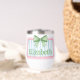 This cute thermal wine tumbler features a pink frame with blue and white stripes and topped with a preppy green and white gingham plaid bow. Personalize with your choice of name or special text. Fun for personalized party favors and gift bags.