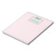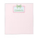 This cute notepad features a pink frame with blue and white stripes and topped with a preppy green and white gingham plaid bow on a background of pink and white polka dots. Personalize with your choice of name or special text. Fun for personalized gift bags and party favors.