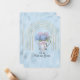 A beautiful blue foil background with a set of gold arches enclosing an image on pink and blue hydrangeas in a watering can.