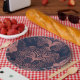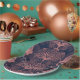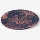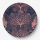 Pink and dark blue shapes is a beautiful AI art design that shows pink lace shapes on a dark blue background. They are the perfect paper plates to impress your guests