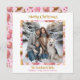 Personalized Christmas cards with a family photo. Background is pretty pink and gold festive Christmas elements.