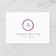 Modern business card featuring a simple yet professional design with your monogram inside of a pink and purple circle. Use the template to generate a QR code or remove it in the design editing tool.