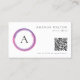 Pink and Purple Monogram QR Code Modern Visitenkarte