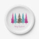 Ein lustiges und modernes Design mit bunten Weihnachtsbäumen und dem Sprichwort "Frohe Weihnachten", das Sie mit nur wenigen Klicks einfach personalisieren können.