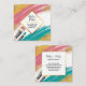Erleben Sie mit dieser eleganten und beruflichen Makeup Artist Business Card einen bleibenden Eindruck! Mit fetten, künstlerischen Pinselstrichen in Rosa, aquamarin und Gold und einer Touch glänzender Glam ist dieses quadratische Design perfekt für Schönheitsexperten, die gewollt sind, sich zu erweisen.