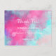 Eine künstlerisch moderne mädchenhafte rosa, aquamarine und lavendelfarbene Bokeh Wedding Dankeschön Karten ist perfekt für jede klassische und moderne Zeremonie. Dieses exquisite handgemalte, moderne abstrakte Farbtönen in Aquarelltönen ist perfekt für das trendige und stilvolle Paar. Passen Sie dieses Design mit Ihren eigenen Nachrichten und personalisierten Informationen an. Alle Designs sind bedruckt