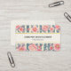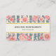 Eine Visitenkarte mit einem wunderschönen Muster mit hübschen rosa Blume, die über einem gestreiften Muster aus blauen und cremefarbenen Streifen angeordnet sind. Der mittlere Teil der Visitenkarte ist eine solide Creme mit Imitaten goldenen Streifen über den oberen und unteren Rand, Ihr personalisierter Text innen.