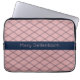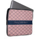 Tragen Sie Ihre Elektronik in einem raffinierten Stil mit einem rosa Art Deco Muster mit Navy Name Stripe Laptop Schlauch. Dieser Sleeve hat einen vom Deko inspiriert Diamantdruck in Marineblau gegen Rosa und bringt eine lustige Jazzzeitästhetik mit sich. Füge deinen Namen in rosa Buchstaben in den zentralen Streifen der Marine hinzu, um sicherzustellen, dass jeder weiß, dass es dir gehört.