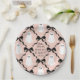 Set des Party-Tisch mit koordinierten Tellern aus Papier mit einem Muster von fröhlichen, lächelnden Geistern und preppy schwarzen Band Bogen auf einem weichen Muschel rosa Hintergrund. Diese kleinen Geister werden Ihren Tellern ein Lächeln geben, indem sie sich an Ihre Veranstaltung anpassen und sie somit perfekt für Halloween-Partys oder Babyduschen mit dem Thema "Fast Due" im Oktober machen.