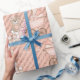 Ein Baby Girl Wrapping Paper ist perfekt für eine Babydusche. Gemustert in rosa Karren und Bären.