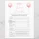 Pink Balloon Baby Dusche Word Scramble