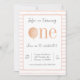 Feiern Sie Ihren ersten Geburtstag mit dieser schönen minimalrosa Ballon-Einladung! Die neutralen Farbtöne machen diese Einladung zu jeder Jahreszeit angenehm.