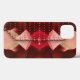 Das Original abstrakte Kunstwerk von ZoeSPEAK auf diesem iPhone 13 Case wird im Stil eines Kupplungssacks oder Abend Handtaschen gemacht. Die roten und blassrosa Gewebeschichten aus strukturiertem Stoff in Rost- und Rosttönen wurden aus einem originalen Foto von Bananen-Blätter gefertigt. Die Tasche hat eine Umschlagklappe getrimmt in einem tiefen roten Band aus Rost, umgeben von Perlrosa Perlen. Winzige rosa Perlen in vertikalen Reihen bedecken die Klappe. In der Mitte der Handtasche befindet sich der Klappverschluss, eine perlrote Scheibe mit goldener Kante und eine rosa Perle in der Mitte. Hier unten ist ein Perlrosa-Teardrop.