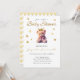 Bear mit rosa Band und goldene Kronen Baby Dusche Einladung. Gut für ein Mädchen.