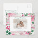 Diese elegante, blumengeschmückte Weihnachtspostkarte beinhaltet die Schönheit, die wir bei unseren Weihnachtsfeiern gewollt haben. In den Beeren gibt es schöne Rosa und im aquamarinen Blätterdach in dieser Vintagen Wasserfarbe frische Grüntöne. Das schöne botanische wird die Grüße, die Sie gewollt, um Ihre Freunde und Verwandten für den Winterurlaub zu senden. Das Hauptmerkmal dieser Urlaubspostkarte ist natürlich Ihre Familie oder Ihr persönliches Foto. Der gesamte Text kann bearbeitet werden. Wenn Sie einen anderen Gruß bevorzugen, außer den "Frohen Weihnachten", die wir hier haben, können Sie das ersetzen. Stellen Sie sicher, dass Sie die Beispielnamen und das Datum auf der Vorderseite und auf der Rückseite dieser Postkarte ändern. Der Beispieltext-Absatz auf der Rückseite der Postkarte kann auch in einen Gruß Ihrer Wahl geändert werden, oder löschen, wenn Sie zu Ihrem eigenen handgeschriebenen Eintrag gewollt haben. An der Oberseite ist Platz für ein eigenes Adressetikett.