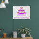 Rosa, lila und gelbe 3-Tier Kuchen und Kerzen Geburtstagsbanner.