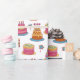 Süßes, buntes, mädchenhaftes Kuchenmuster aus meist rosa geschichteten Kuchen mit Kerzen, andere Farben sind gelb und gebacken Vanillekuchen Farbe. Weißer Hintergrund.