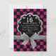 Pink & Black Checkerboard Glitzer Sweet 16 Einladung