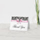 Eleganter rosa und schwarzer Damast danke Karte mit schwarzem Damast Hintergrund und hübsch rosa Bogen mit Diamantenmitte. Diese rosa und schwarz Damaskus danke Ihnen Karte kann leicht angepasst werden, indem Sie die Hintergrundfarbe und den Schriftart Stil, Größe und Farbe ändern. Wählen Sie einfach die orangefarbene Schaltfläche "Anpassen!", um Ihre Veranstaltungsdetails, den Schriftart, die Größe und Farbe des Schriftartes und den Wortlaut hinzuzufügen. Bitte beachten Sie - alle Karten und Einladungs-Designs, die Sie auf Zazzle finden, sind gedruckte Grafiken ohne wirkliche Juwelen, Bögen, Höhen, Prägen oder Beilagen von Teilen oder Teilen.