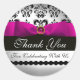 PINK BLACK DAMASK RIBBON MONOGRAM Lila Violette Runder Aufkleber
