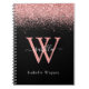 Modernes Notizbuch in Schwarz und Rosa Glitzer, elegant mit Ihrem Skript Monogramm, Vorname und Initial.