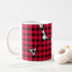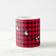 Diese Tasse hat ein modernes Design von soliden schwarzen Diamanten in schwarzen Diamanten-Konturen mit rosa Flecken unter ihnen, alle auf einem Feld von Weiß.