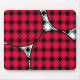 Dieses Mauspad hat ein modernes Design aus massiven schwarzen Diamanten in schwarzen Diamantblöcken mit rosa Konturen unter ihnen, alles auf einem weißen Feld.