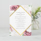 Diese Einladungskarte enthält einen geometrischen Rahmen mit Goldeffekt und Blumenelementen in Rosa und Weiß. Das Design-Layout ist einfach zu befolgen, während Sie Ihre Daten von oben nach unten durch einen Klick auf den Button "Personalisieren" füllen. Die Typografie ist modern auf weißem Hintergrund.