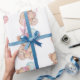 Pink & Blue Balloons & Teddy Bear Baby Girl Geschenkpapier