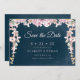 Teilen Sie Ihr Datum mit diesem unvergesslichen und eleganten Pink & Blue Starry Night Sky Handfasting Save the Date Template mit wunderschönen rosa Blume und Sternenhimmel über einer dunkelblauen Hintergrundfarbe in einer leicht zu bearbeitenden Vorlage. Stich "Personalize this template" um deinen eigenen benutzerdefinierten Text hinzuzufügen und stich "Customize Weitere" für alle anderen Optionen.