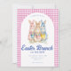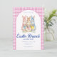 Pink Blue Floral Bunny Watercolor Gingham Easter Einladung