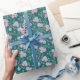 Pink & Blue Floral Pattern on Teal – Modern Geschenkpapier