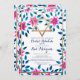 Pink Blue Flowers Blätter Bat Mitzvah Hebräischer Einladung