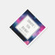 Geburtstagspartyservietten mit einem schönen abstrakten Design in Rosa und Blau. Weiße Sterne sprengen durch dieses Bild des Kosmos. Trippig und cool. Ein weißes Quadrat mit einem schwarzen Rahmen, der oben mit dem Text überlegt ist.