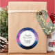 Business Aufkleber mit einem schönen abstrakten Design in Rosa und Blau. Weiße Sterne sprengen durch dieses Bild des Kosmos. Trippig und cool. Ein weißer Kreis mit einem schwarzen Rahmen, der oben mit dem Text überlegt ist.