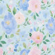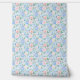 Wallpaper featuring a pretty grandmillennial style cottage floral pattern, with small scale pink and powder blue roses and fresh green leaves on a soft pastel blue background. This sweet, romantic design feels calm and cohesive for bedrooms, nursery walls, and powder rooms, and makes a charming accent wall. Pairs beautifully with white trim, rattan, and vintage framed art.