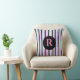 Pink blaue Textur Streifen Muster Mit Monogramm wirbelkissen.